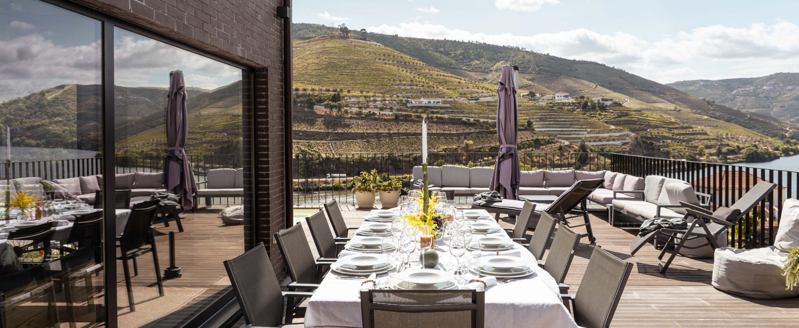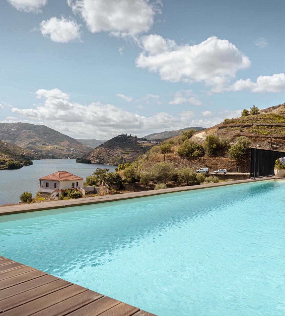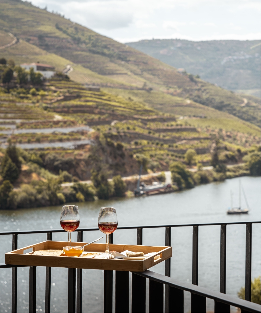 A piscina de borda infinita, com vista sobre o rio, oferece um ponto de contemplação privilegiado. É um espaço pensado para relaxar, aproveitar o silêncio e sentir a tranquilidade única do Douro.